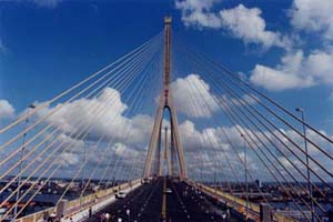 杨浦大桥为双塔双索面预应力叠合梁武斜拉桥,主塔高220米,上海建工一建集团有限公司承担了浦西主塔、浦东主塔、浦西主引桥最高区段的施工。该工程先后获得上海市“白玉兰”奖、建设部样板工程、国家“鲁班奖”。