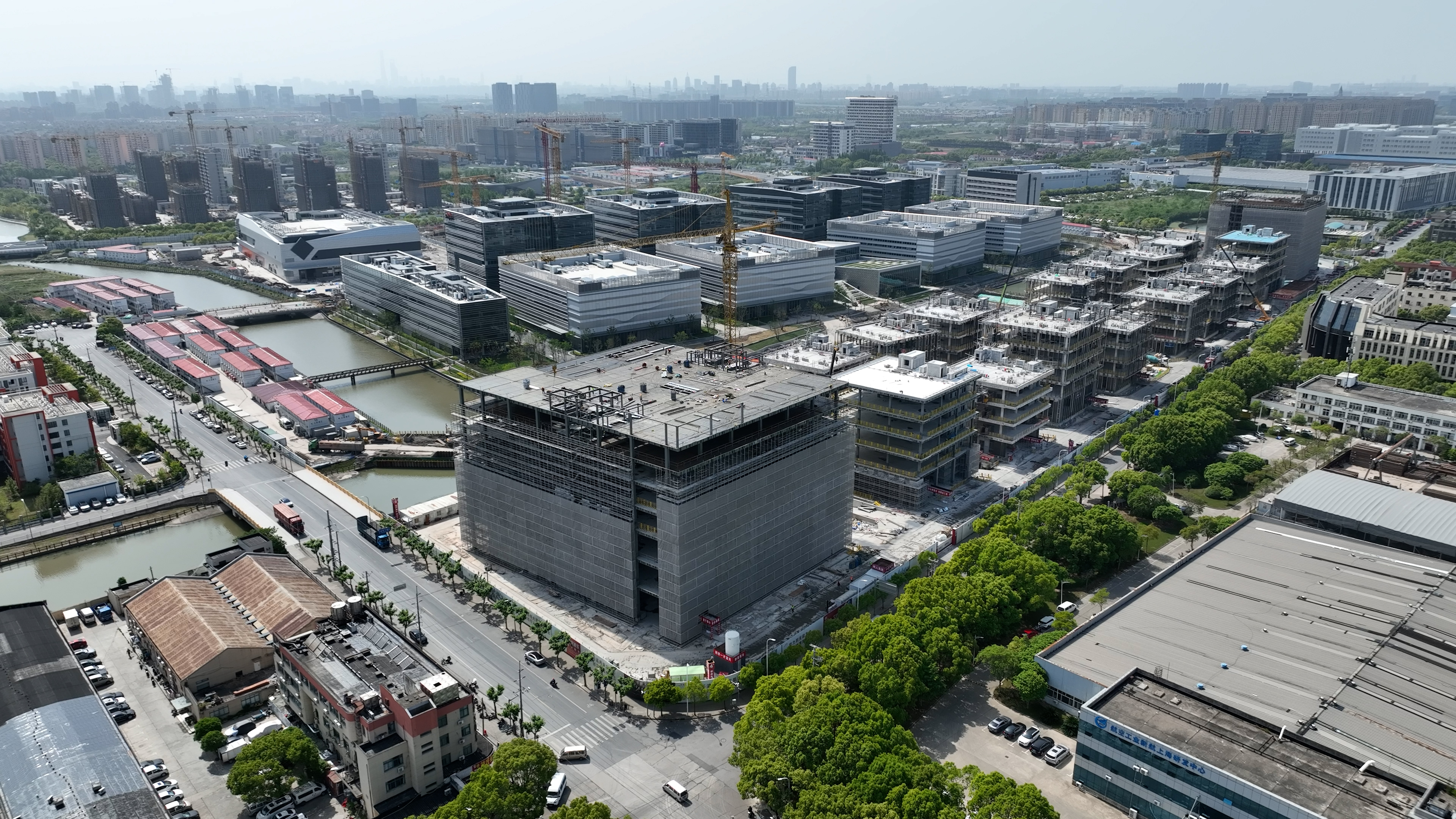 该项目位于浦东新区唐镇,东至妙境北路,西至新西河,南至王桥路,北至创业路,总建筑面积达到15.5万平方米,包括18栋4-7层的智能厂房和1栋2层的配套用房。 项目一侧临河,基坑长560米、宽65-80米,挖深10.6米,属狭长临河深基坑。项目部采用“先深后浅”的施工顺序及“分区分层降水+分仓围护施工”的组合工艺,确保了基坑施工安全。由于场地限制无法设置环形施工道路,项目部沿妙境北路一侧设置5个车辆进出口,并结合BIM模拟优化工序,采取动态规划“潮汐运输路线”、错峰施工等措施,防止高峰期车辆出入引发交通拥堵,最终高效完成了36万方土方的外运。针对狭长场地内19栋单体钢结构施工全面铺开的情况,项目部在现场设置6台塔吊,确保了柱吊装、梁吊装、梁柱紧螺栓固、焊接等工序依次循环流水施工,汽车吊辅助补位吊装,最大效率利用了吊装设备及场地。 该项目钢结构总量为17000吨,最大单件吊装重量达11吨。面对上万吨钢构件的施工,其精度控制是工程推进中的重中之重。项目部应用BIM+Tekla建模,实现了各复杂节点的“零碰撞”,确保了高精度和高效率的钢结构安装。项目部应用激光切割机,将钢构件加工的误差精确控制在了0.5毫米以内,为现场安装过程的精度控制提供了坚实支撑。焊接作业中,项目部引入智能焊接机器人,确保了焊接稳定性和焊接质量,焊缝合格率达99.5%。 随着历时270天的钢结构施工的顺利完成,该项目正式转入机电安装、幕墙、装饰等多专业交叉作业阶段,项目部将继续依托数字化、智能化建造手段,确保工程的高质量交付,为打造长三角先进制造业集群标杆贡献一份力! |